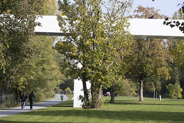 Štvanická lávka po odstranění ocelové konstrukce sloužící pro zvednutí mostu (18. října 2024)