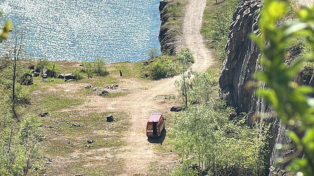 U pádu muže do lomu Amerika pár kilometrů od Karlštejna zasahují od úterního odpoledne všechny složky záchranného systému. (22. dubna 2025)