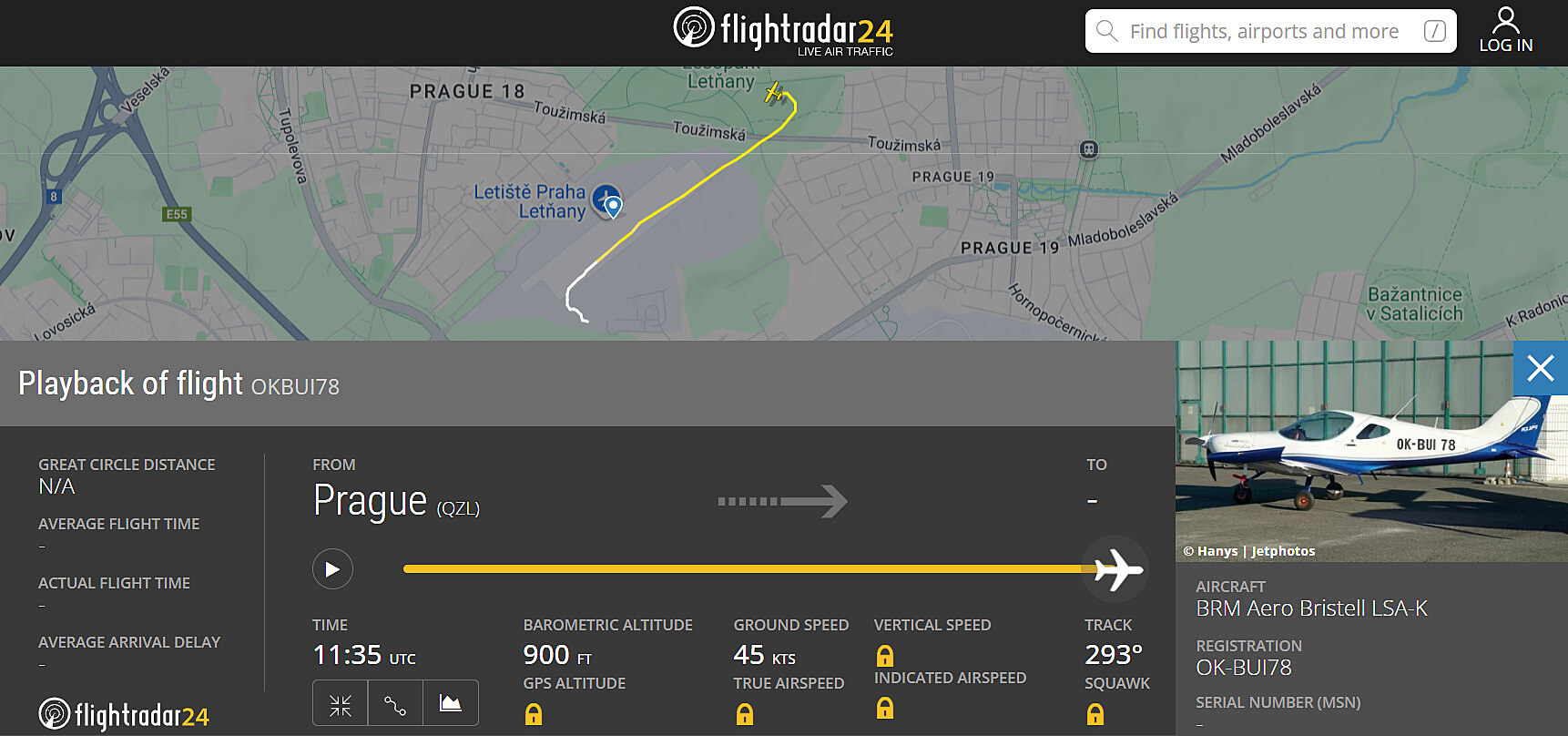 Záznam letu v aplikaci Flightradar24. (7. září 2025)