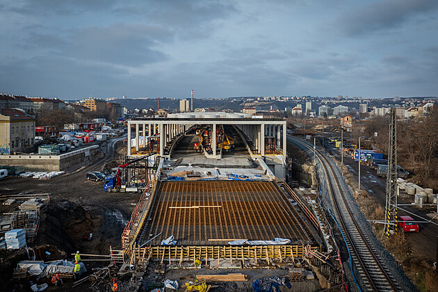 V Holešovicích pokračuje stavba nádraží Praha-Bubny. (22. ledna 2025)
