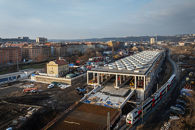 V Holešovicích pokračuje stavba nádraží Praha-Bubny. (22. ledna 2025)
