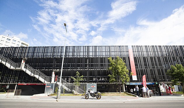 Nový parkovací dům, který Praha v pátek slavnostně otevřela na rohu Petržílkovy a Bucharovy ulice v Nových Butovicích, má ulevit náporu na místní parkovací místa. (26. června 2023)