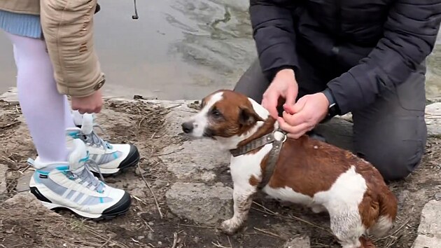„Po několika desítkách minut pátrání za pomocí štěrbinové kamery se nám podařilo psa přilákat zpět na břeh. Zvíře jsme předali majiteli,“ dodali.