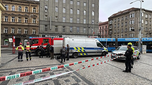 Policejní manévry na I. P. Pavlova v Praze. Pyrotechnik zkoumá podezřelé zavazadlo. (24. září 2025)