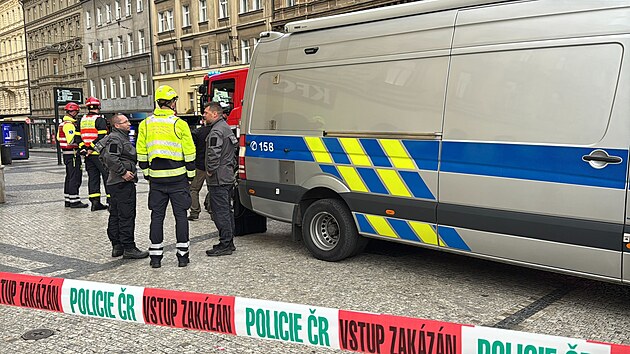Policejní manévry na I. P. Pavlova v Praze. Pyrotechnik zkoumá podezřelé zavazadlo. (24. září 2025)