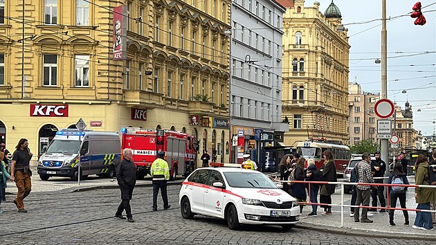 Policejní manévry na I. P. Pavlova v Praze. Pyrotechnik zkoumá podezřelé zavazadlo. (24. září 2025)