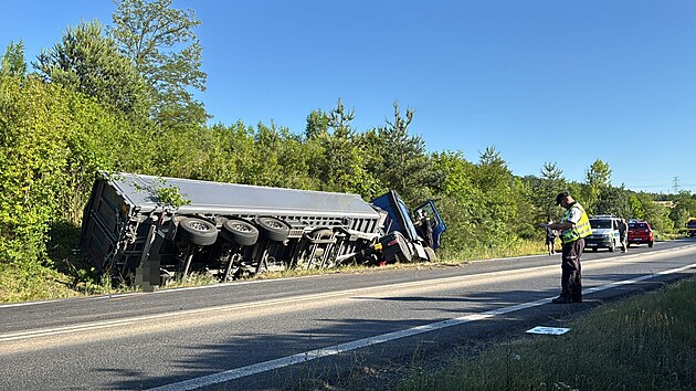 Silnici I/16 u obce Nová Ves na Mělnicku uzavřela dopravní nehoda. (1. července 2025)
