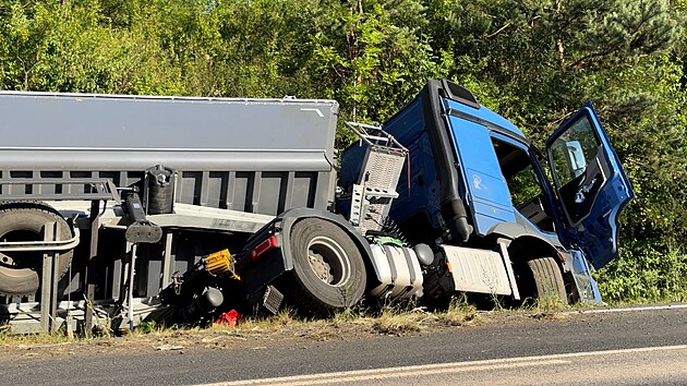 Řidič usnul za volantem, nabouraný náklaďák se pak převrátil na další vozidlo