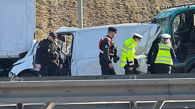 Na třetím kilometru Pražského okruhu u Vestce ve směru na D6 do sebe nabouraly dvě nákladní auta a dodávka. (6.3.2025)