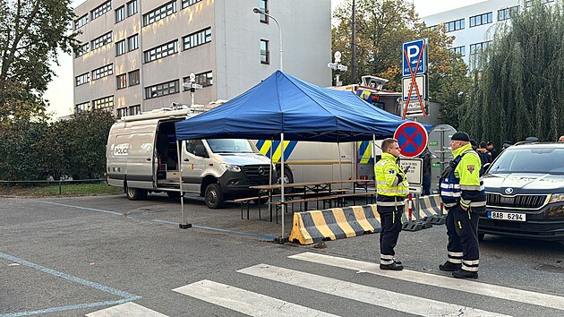 Na pražské zdravotnické škole zasahují všechny složky integrovaného záchranného systému. Probíhá tam totiž nácvik zásahu při teroristickém útoku. (24. října 2024)
