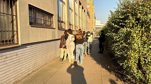 Na pražské střední zdravotnické škole v Praze 4 probíhá rozsáhlé cvičení složek integrovaného záchranného systému, které simuluje zásah při teroristickém útoku. (24. října 2024)