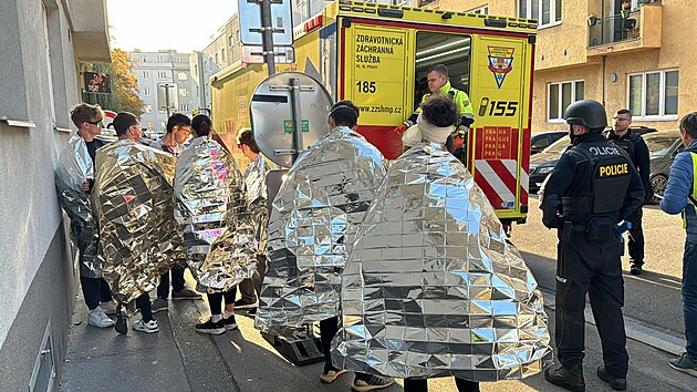 Na pražské střední zdravotnické škole v Praze 4 probíhá rozsáhlé cvičení složek integrovaného záchranného systému, které simuluje zásah při teroristickém útoku. (24. října 2024)