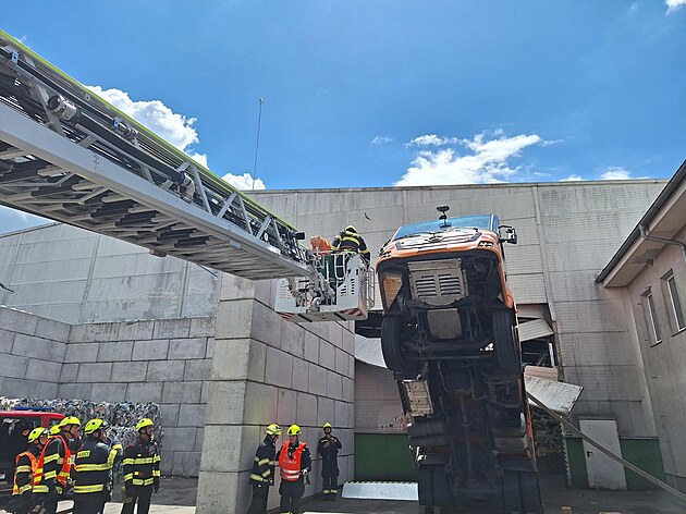 Kvůli zavření vrat pražské třídicí linky v nepravou chvíli se vysoko do vzduchu dostal předek popelářského vozu. (29. května 2025)