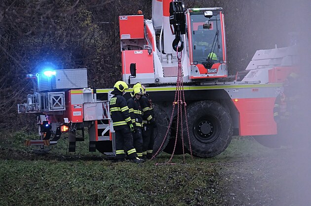 V pražské ulici Roztocká zasahovali hasiči u potopené lodi ve Vltavě. (10. prosince 2024)