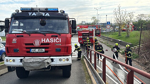 Požár dílny pod vestibulem nádraží Holešovice. (14. dubna 2025)