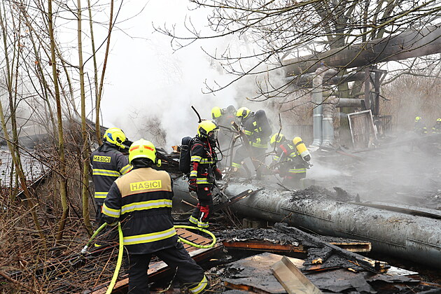 Hasiči v Kladně zasahují u požáru budovy v bývalém areálu Poldi v Huťské ulici. Vyhlášen byl druhý stupeň požárního poplachu. (9. prosince 2024)