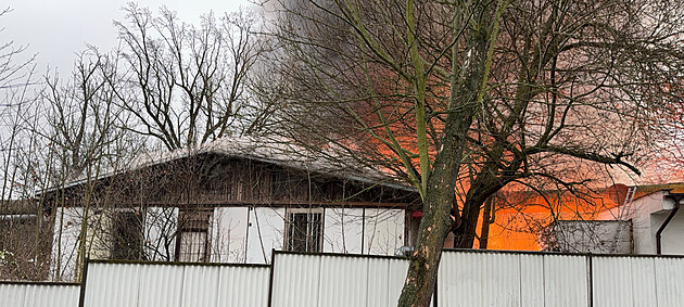 Požár v Kladně u budovy bývalého areálu Poldi v Huťské ulici (9. prosince 2024)