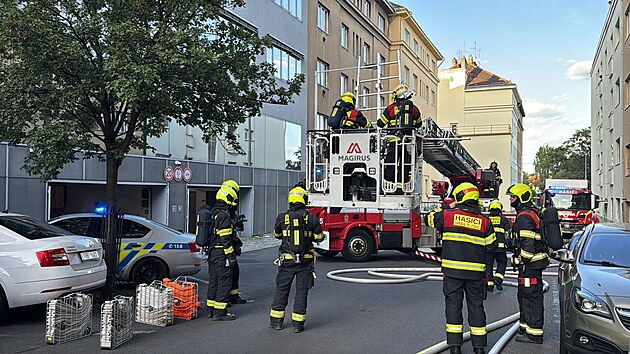 Požár střechy administrativní budovy ve Vinohradské ulici v Praze (25. června 2025)