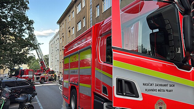 Požár střechy administrativní budovy ve Vinohradské ulici v Praze (25. června 2025)