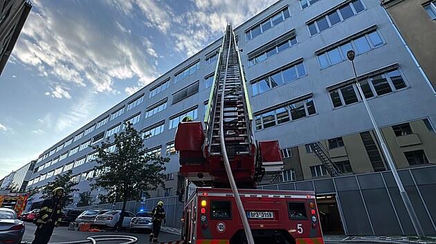 Požár střechy administrativní budovy ve Vinohradské ulici v Praze (25. června 2025)