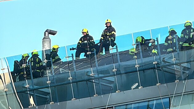 Požár střechy administrativní budovy ve Vinohradské ulici v Praze (25. června 2025)