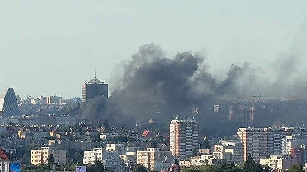 V blízkosti metra Želivského hoří střecha vícepodlažního domu