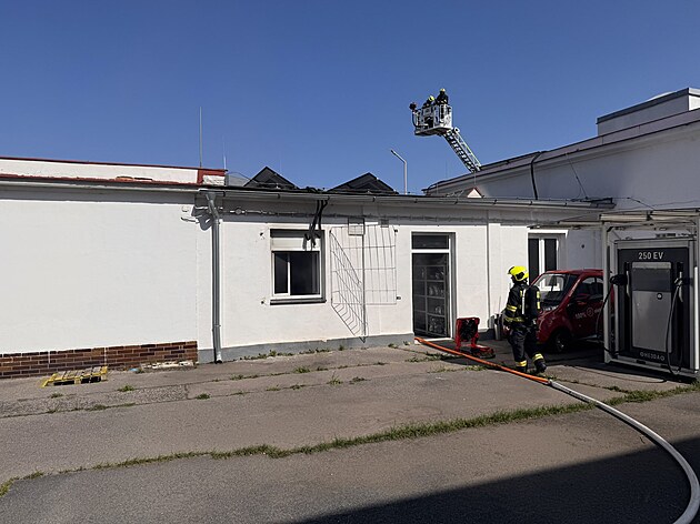 U letiště Praha-Letňany hoří sklad s bateriemi od fotovoltaiky. (12. 6. 20205)