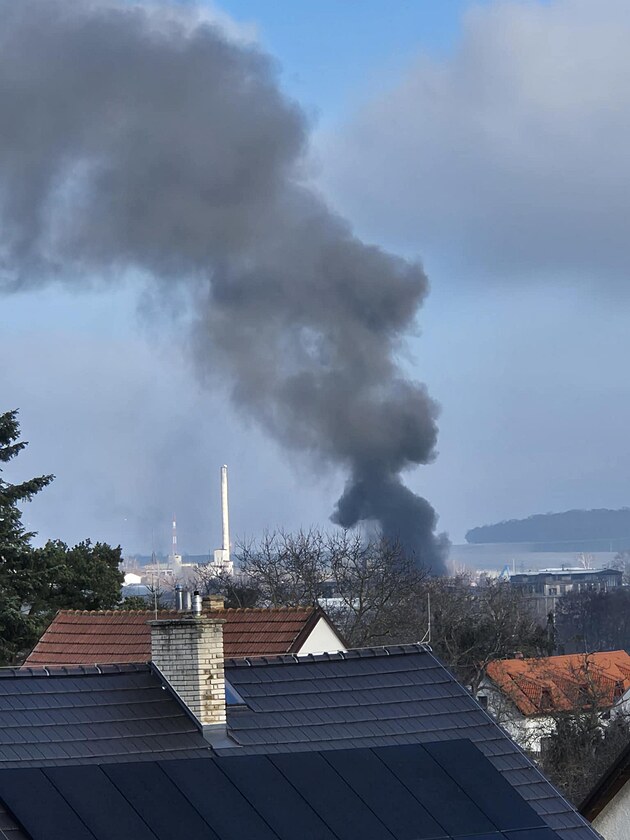 V Kovohutích v Mníšku pod Brdy vypukl požár. (18. ledna 2025)