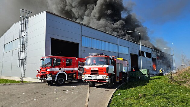 Středočeští hasiči zasahovali u požáru haly s třídící linkou odpadu (19. března 2024)