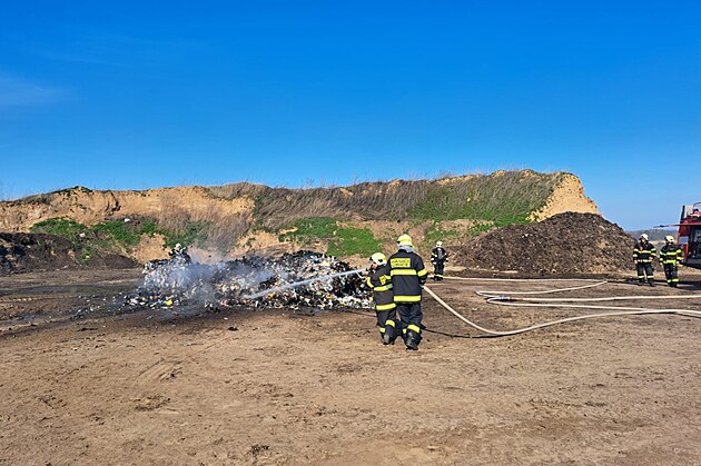 Středočeští hasiči zasahovali u požáru haly s třídící linkou odpadu (19. března 2024)
