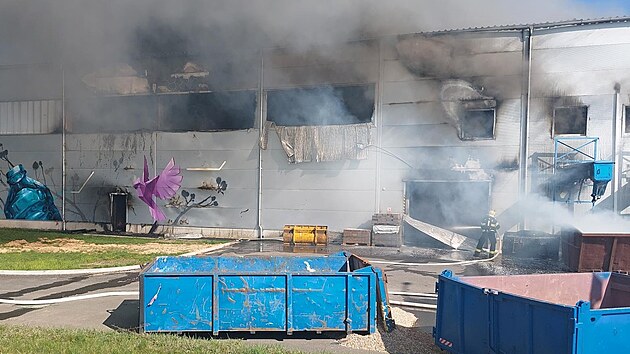 Středočeští hasiči zasahovali u požáru haly s třídící linkou odpadu (19. března 2024)