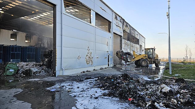 Středočeští hasiči zasahovali u požáru haly s třídící linkou odpadu (19. března 2024)