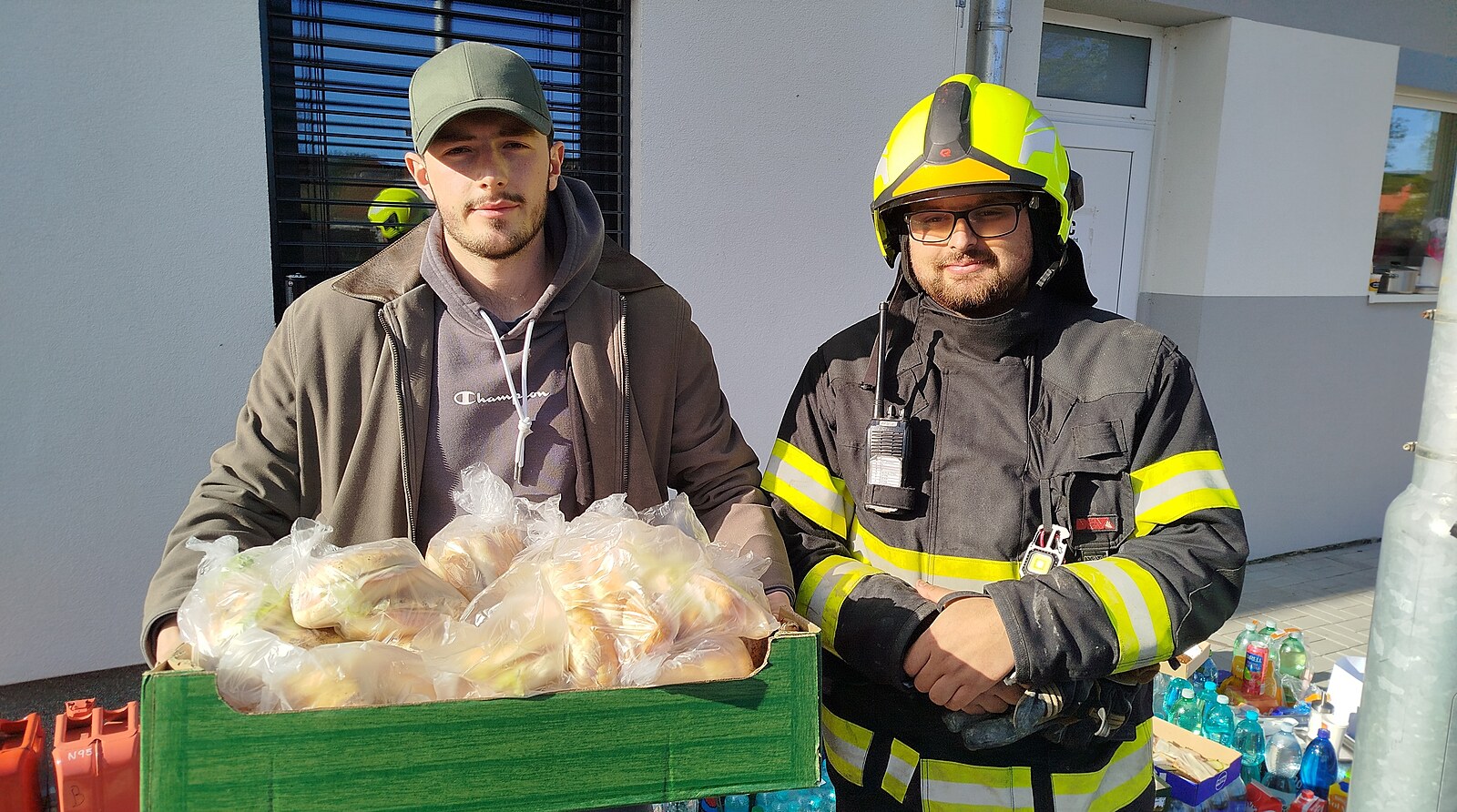 Krátce před devátou přijel k hasičárně místostarosta Rynholce Kevin Franc. Z kufru vozu vyndal stovku obložených housek se slovy, že další várka je na cestě. Už v noci přivezl stovku sýrových burgerů z fastfoodu v nedaleké Velké Dobré.