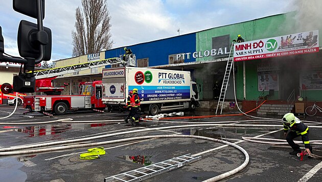 Hasiči likvidují požár v pražské tržnici Sapa, vyhlášen byl druhý stupeň poplachu. (24. prosince 2024)
