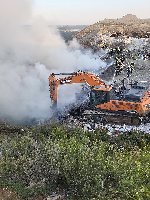 U požáru skládky v Benátkách nad Jizerou zasahuje čtrnáct jednotek hasičů. (13. června 2026)