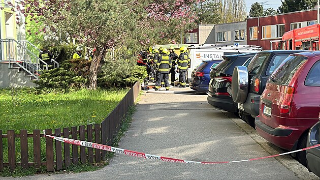 Po požáru technologické místnosti domu na Praze 12 ve středu odpoledne začal unikat plyn. (16. dubna 2025)