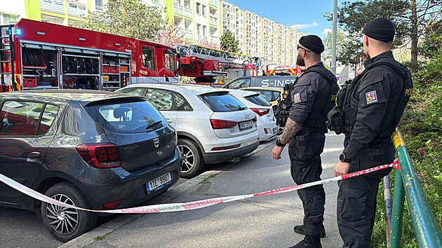 Po požáru technologické místnosti domu na Praze 12 ve středu odpoledne začal unikat plyn. (16. dubna 2025)