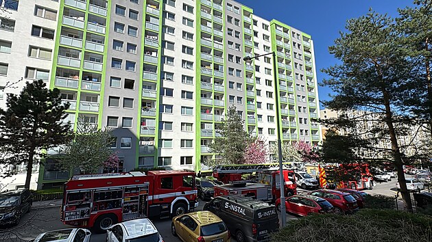 Po požáru technologické místnosti domu na Praze 12 ve středu odpoledne začal unikat plyn. (16. dubna 2025)