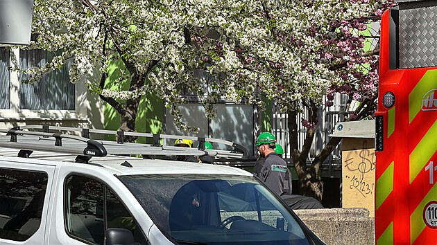 Po požáru technologické místnosti domu na Praze 12 ve středu odpoledne začal unikat plyn. (16. dubna 2025)