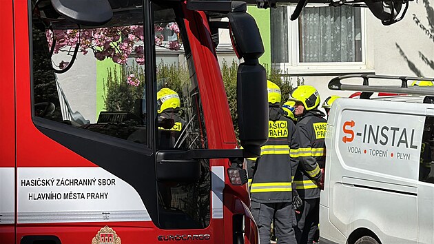 Po požáru technologické místnosti domu na Praze 12 ve středu odpoledne začal unikat plyn. (16. dubna 2025)