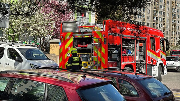Po požáru technologické místnosti domu na Praze 12 ve středu odpoledne začal unikat plyn. (16. dubna 2025)