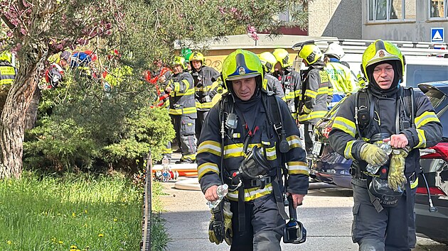 Po požáru technologické místnosti domu na Praze 12 ve středu odpoledne začal unikat plyn. (16. dubna 2025)