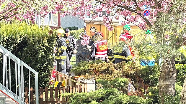 Po požáru technologické místnosti domu na Praze 12 ve středu odpoledne začal unikat plyn. (16. dubna 2025)
