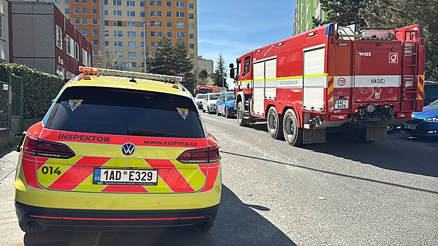 Po požáru technologické místnosti domu na Praze 12 ve středu odpoledne začal unikat plyn. (16. dubna 2025)