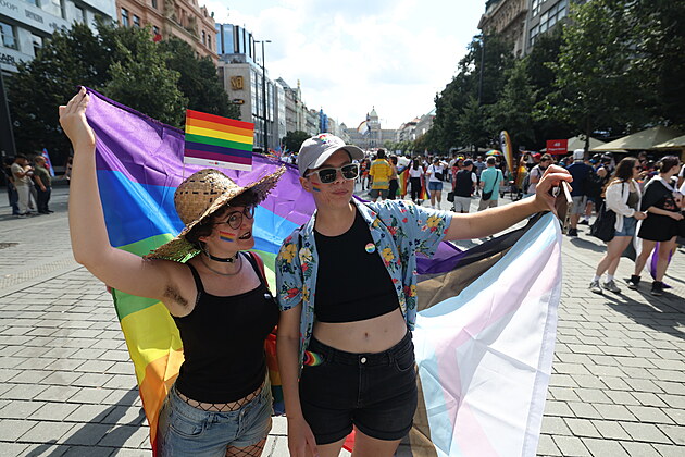 Na Václavském náměstí se začali scházet účastníci duhového průvodu Prague Pride. (10. srpna 2024)