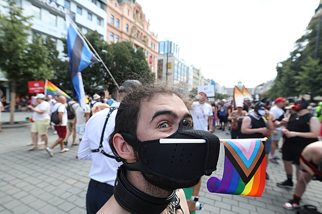 Na Václavském náměstí se scházejí účastníci duhového průvodu Prague Pride. (10. srpna 2024)