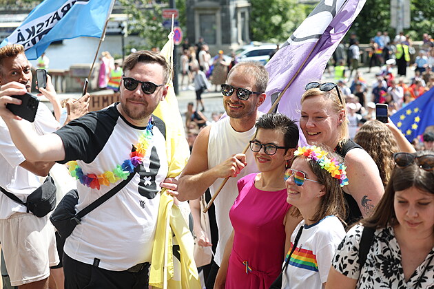 Duhového průvodu se zúčastnila i místopředsedkyně Sněmovny Olga Richterová. (10. srpna 2024)