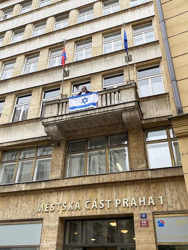 Starostka Prahy 1 Terezie Radoměřská (TOP09) vrací zpět Izraelskou vlajku. (28. května 2025)