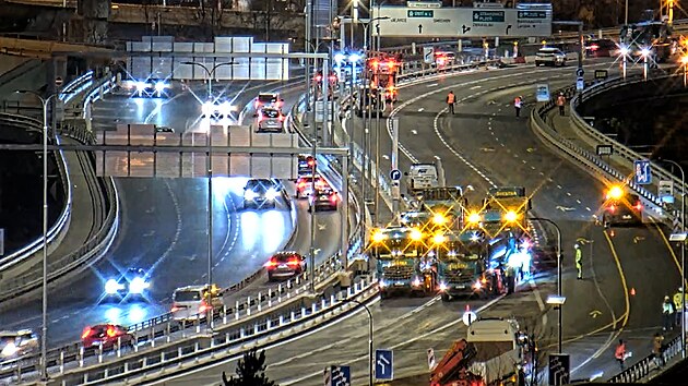 Na Barrandovském mostě probíhají před otevřením zátěžové zkoušky (22. listopadu 2024)