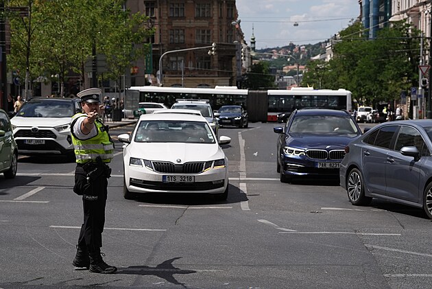 Teď jedou ti zprava. Příslušník policie řídil auta v centru Prahy. Nešly semafory. Jenže řidiči už význam jeho pokynů neznají.